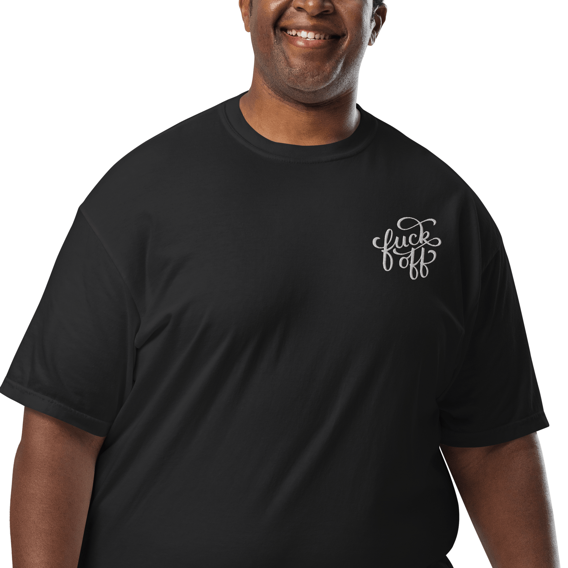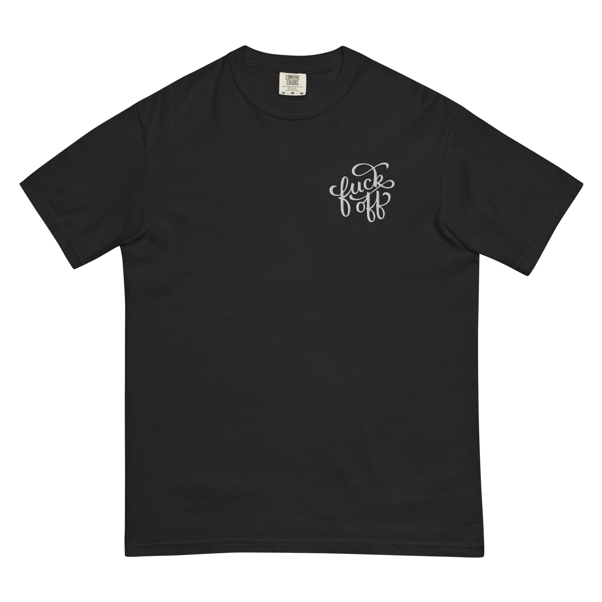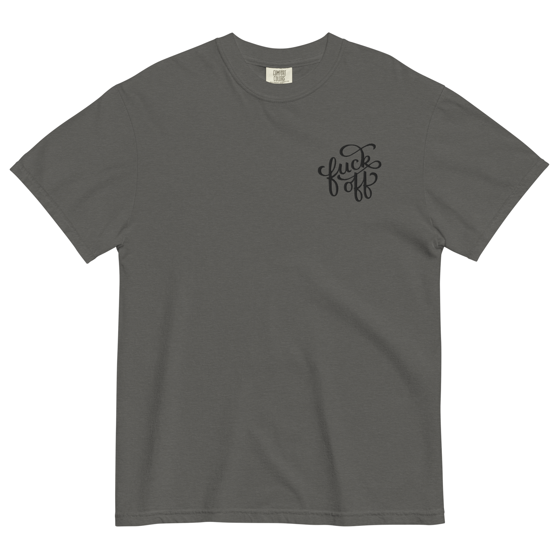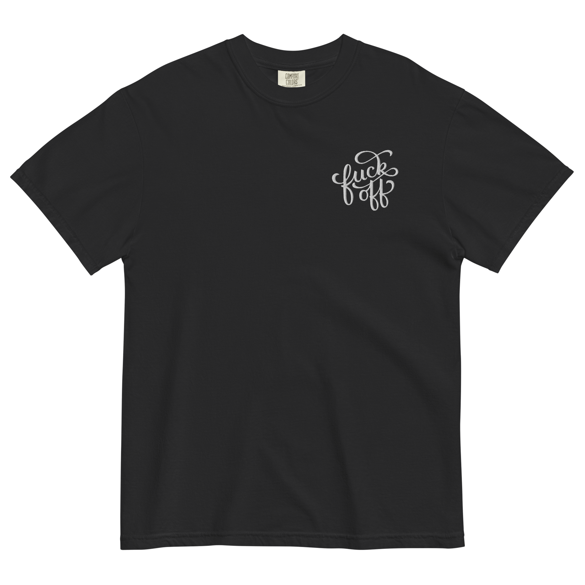 A little embroidery, a lot of attitude. The Fuck Off unisex heavyweight t-shirt is the perfect balance of structure and softness, featuring a bold yet classy left pocket embroidery in a decorative font. Whether you’re feeling extra antisocial or just prefer your clothing to do the talking, this tee has you covered.