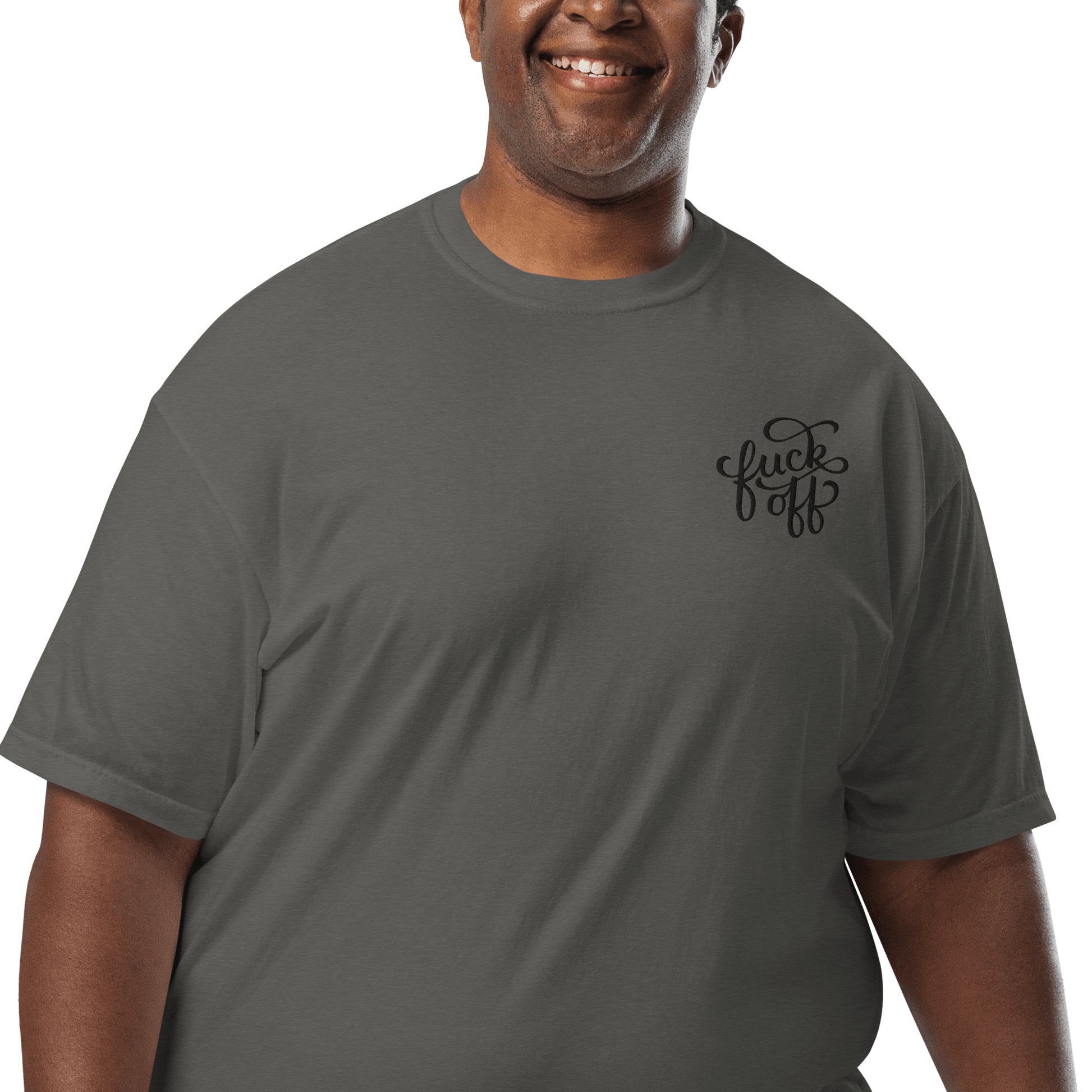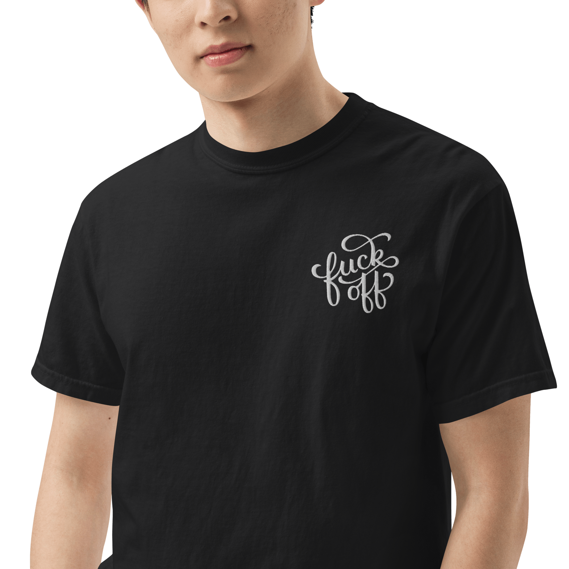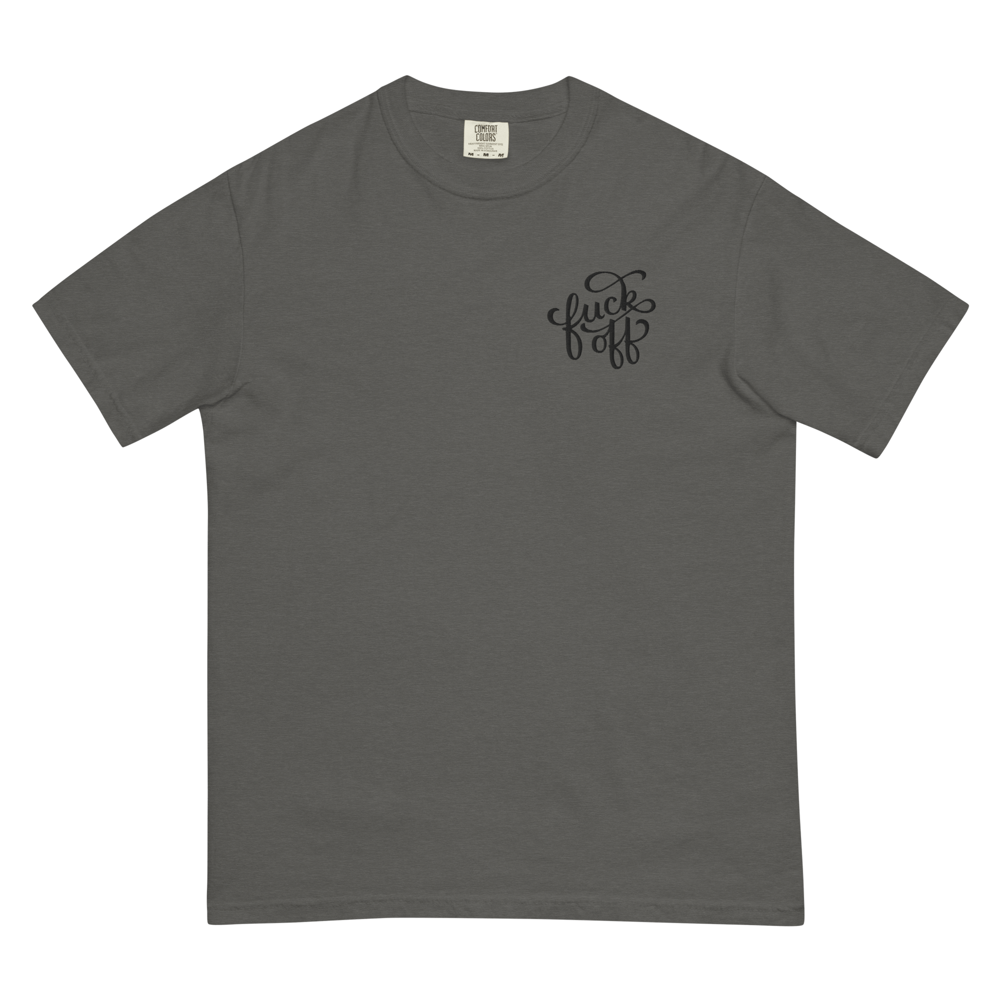 A little embroidery, a lot of attitude. The Fuck Off unisex heavyweight t-shirt is the perfect balance of structure and softness, featuring a bold yet classy left pocket embroidery in a decorative font. Whether you’re feeling extra antisocial or just prefer your clothing to do the talking, this tee has you covered.