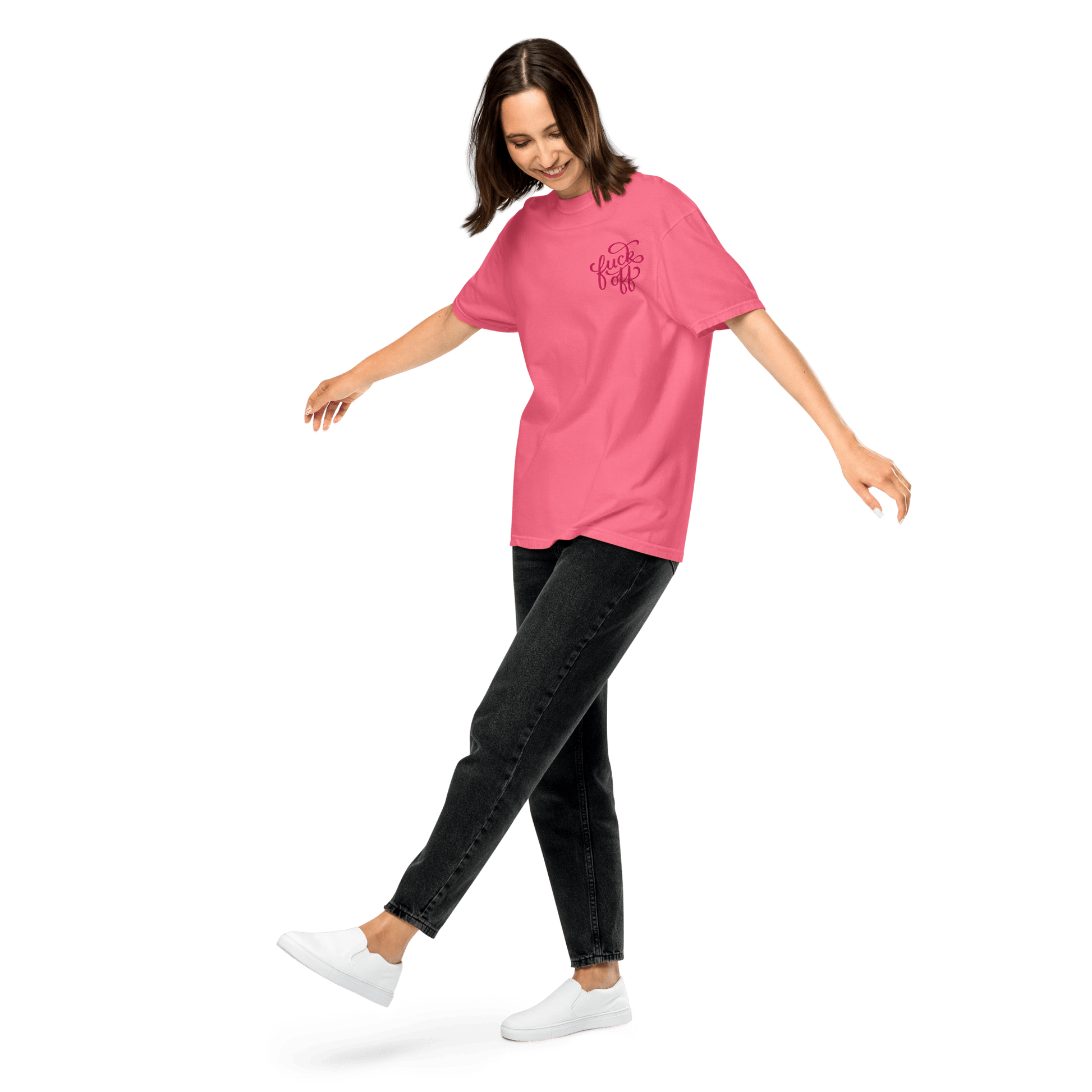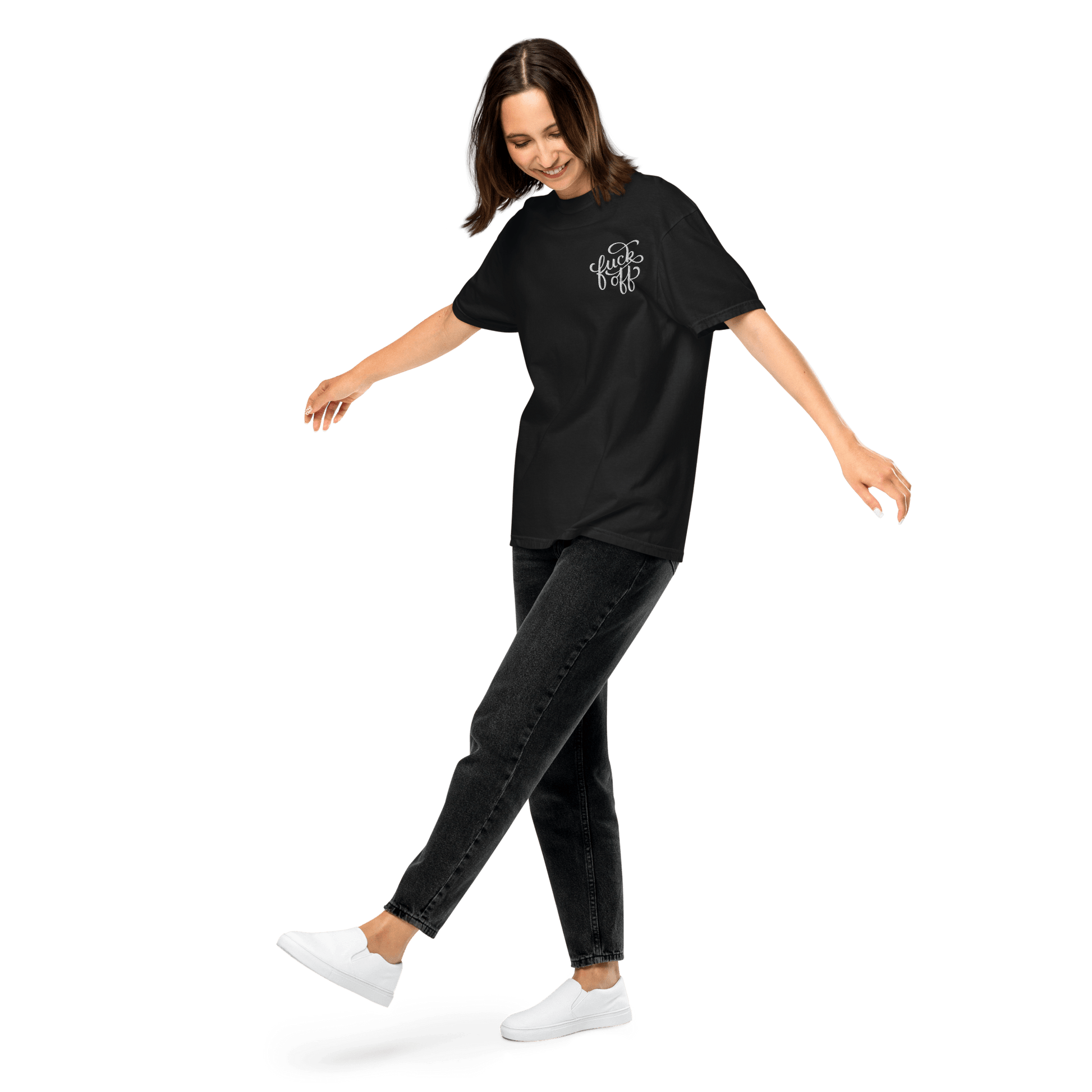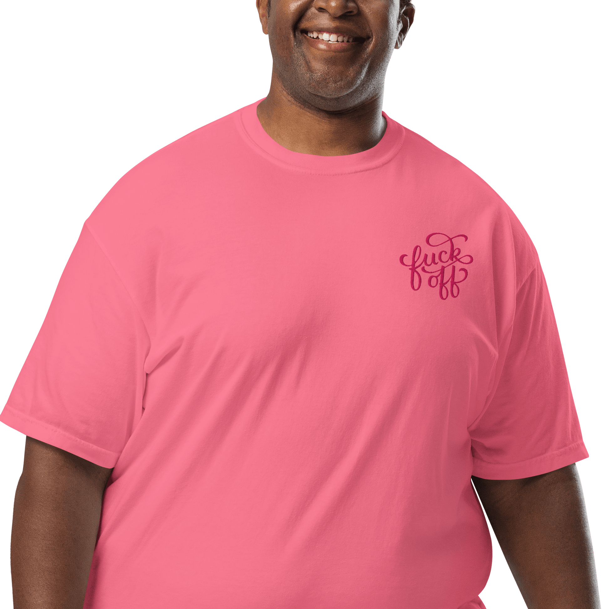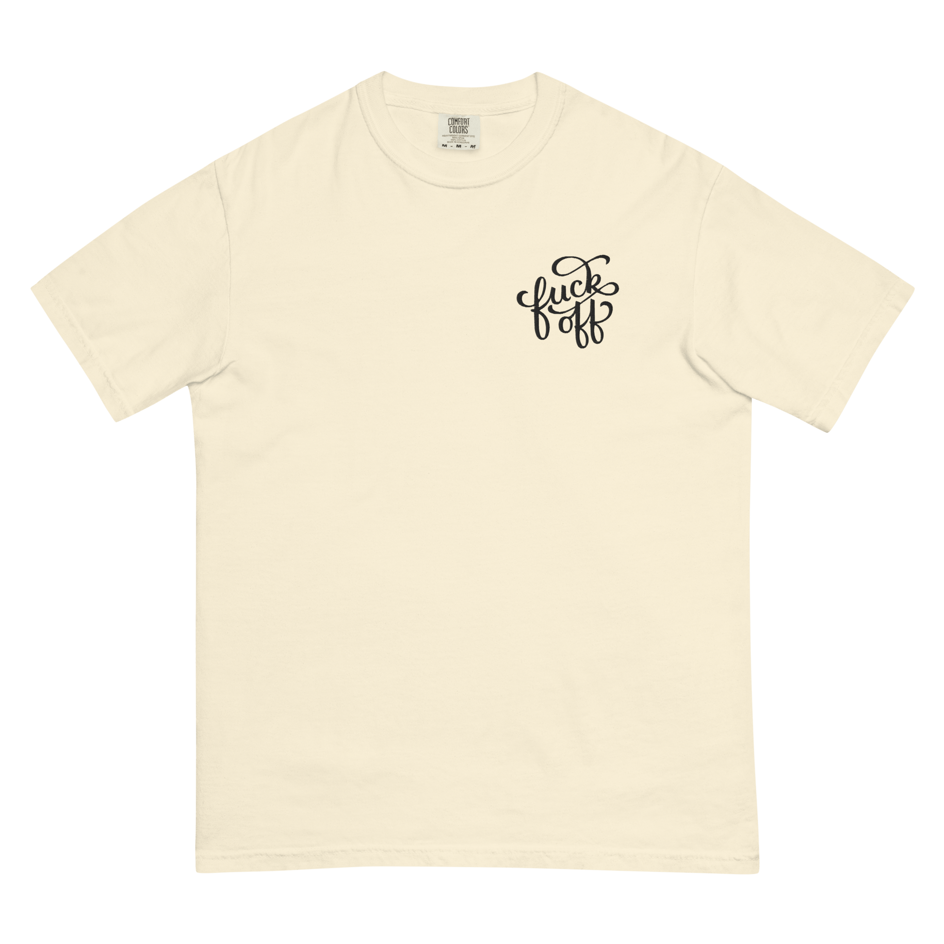 A little embroidery, a lot of attitude. The Fuck Off unisex heavyweight t-shirt is the perfect balance of structure and softness, featuring a bold yet classy left pocket embroidery in a decorative font. Whether you’re feeling extra antisocial or just prefer your clothing to do the talking, this tee has you covered.