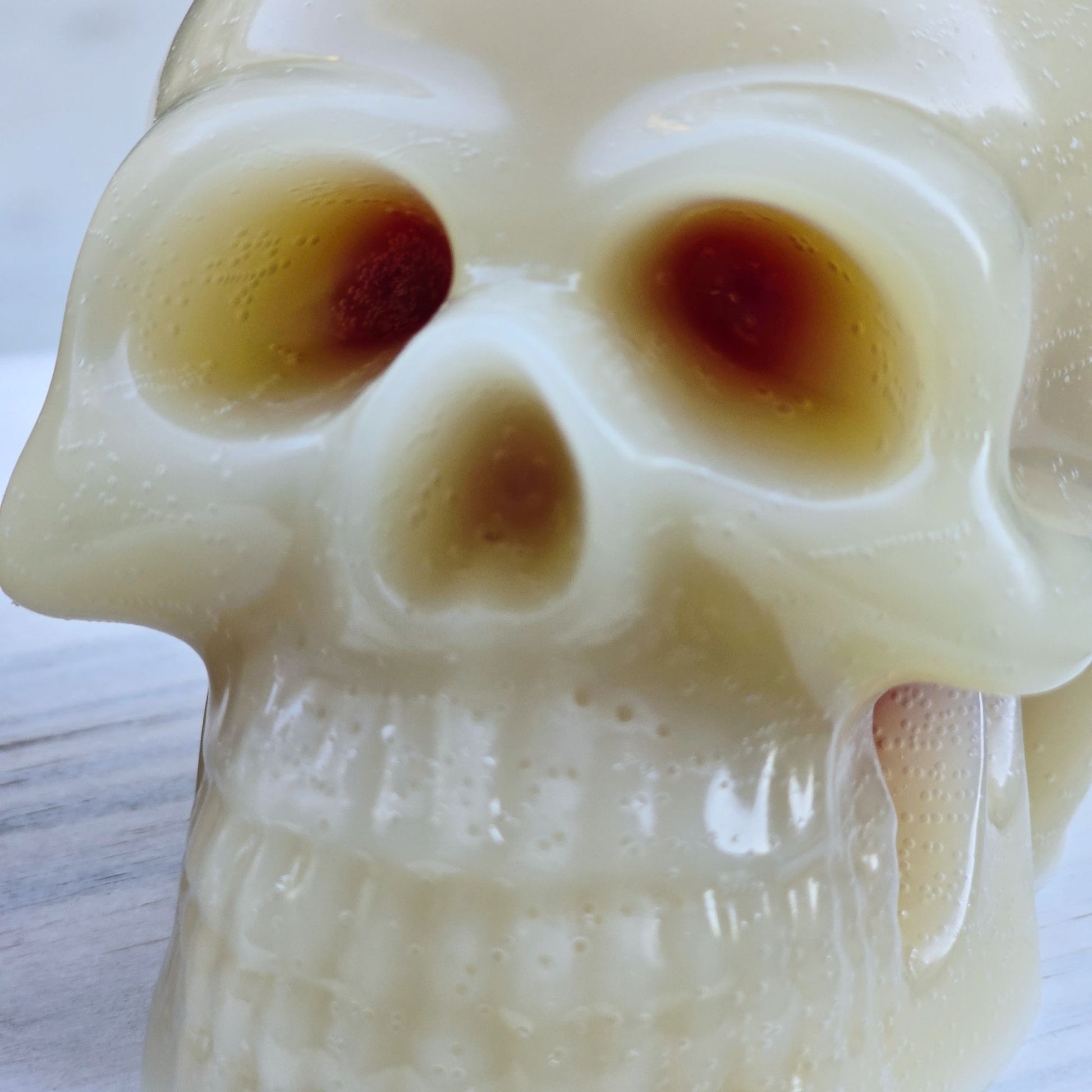 Style Tags: bleeding skull candle ✦ gothic décor ✦ artisan candle ✦ spooky collectible ✦ dual scent