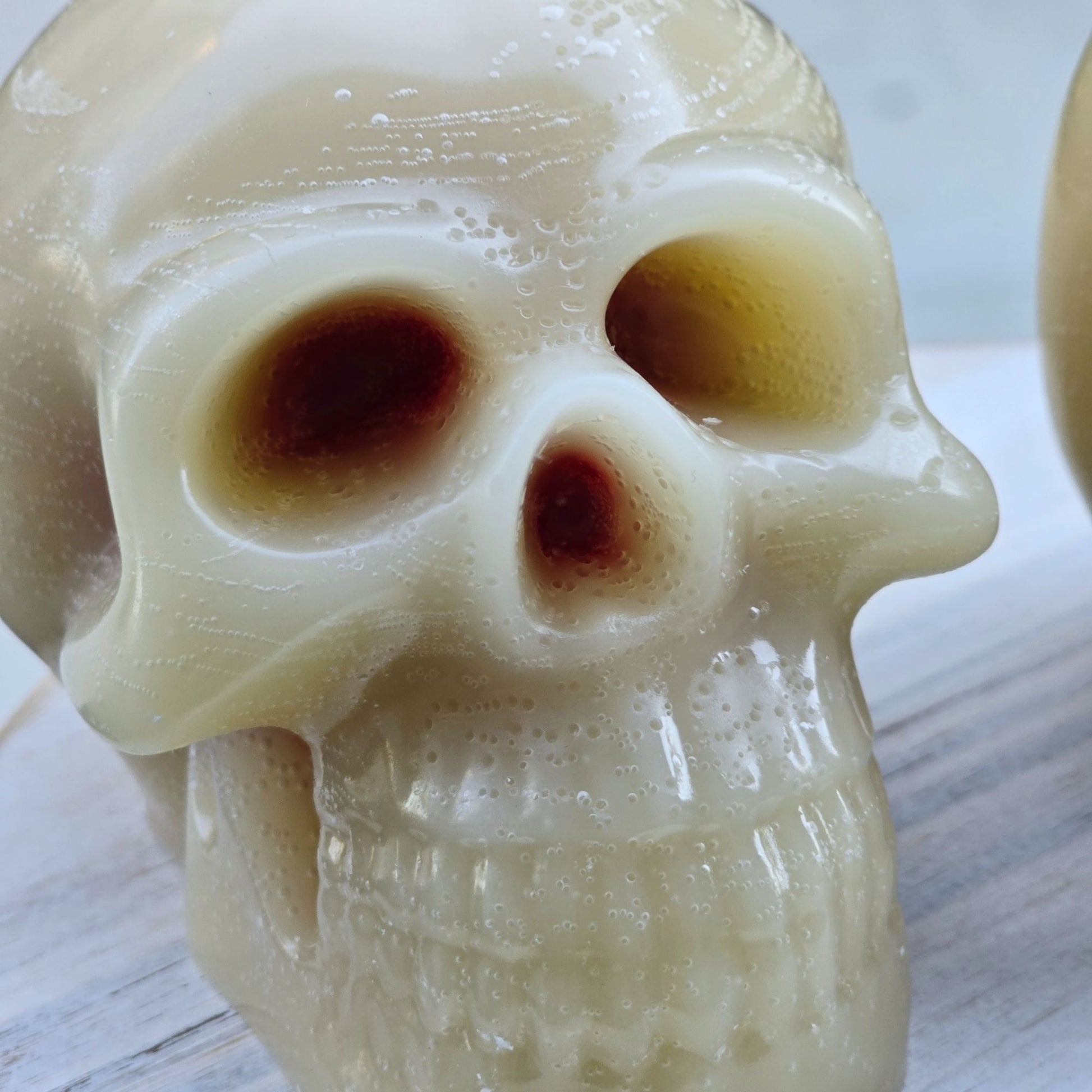 Massive ✦ macabre, this sculpted skull candle transforms as it burns—revealing a crimson “bleeding” effect that drips down its bone-white surface.