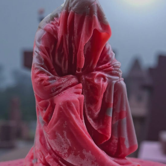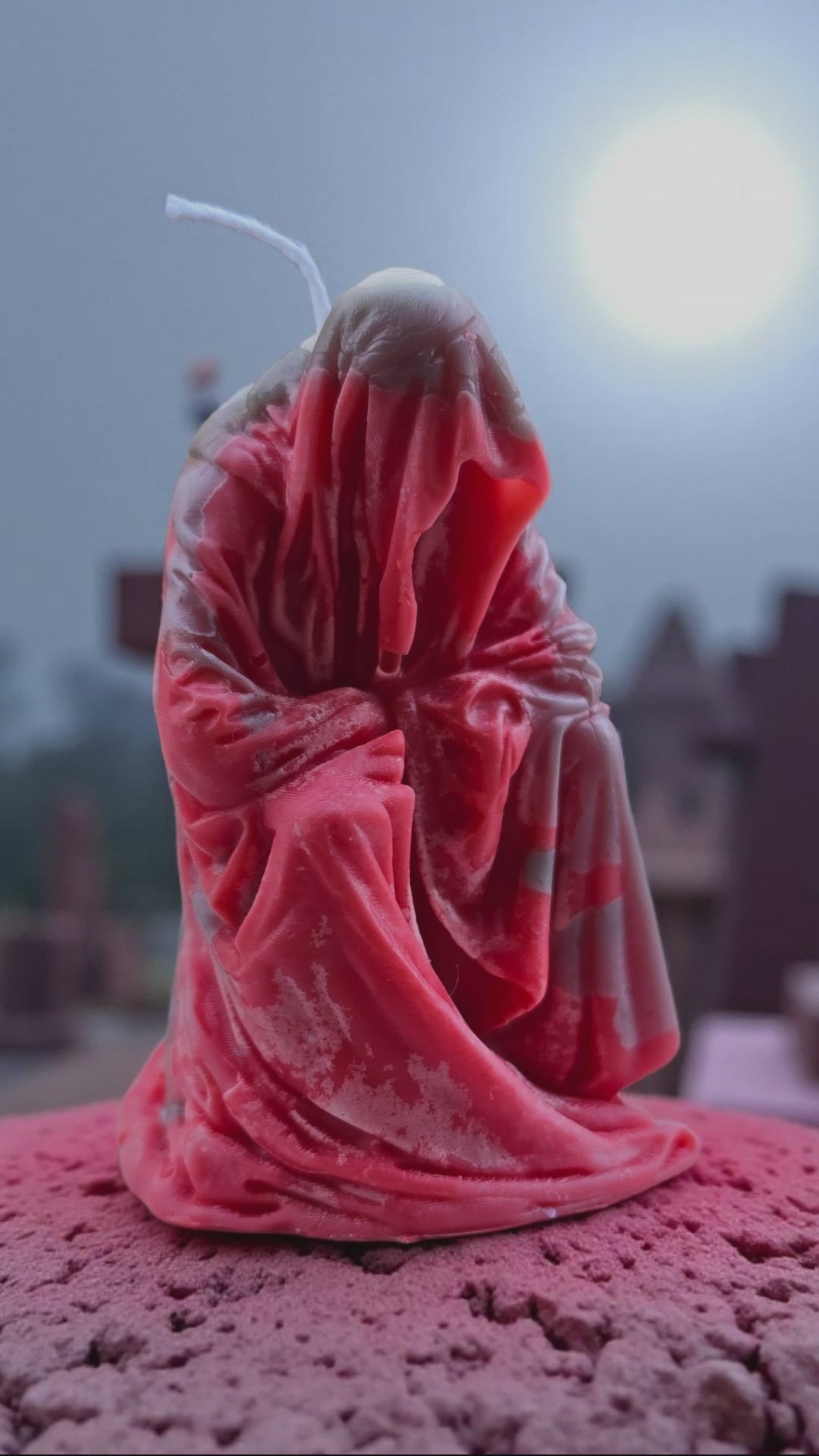 Style Tags: ghost candle ✦ hooded figure ✦ gothic décor ✦ artisan candle ✦ spooky collectible