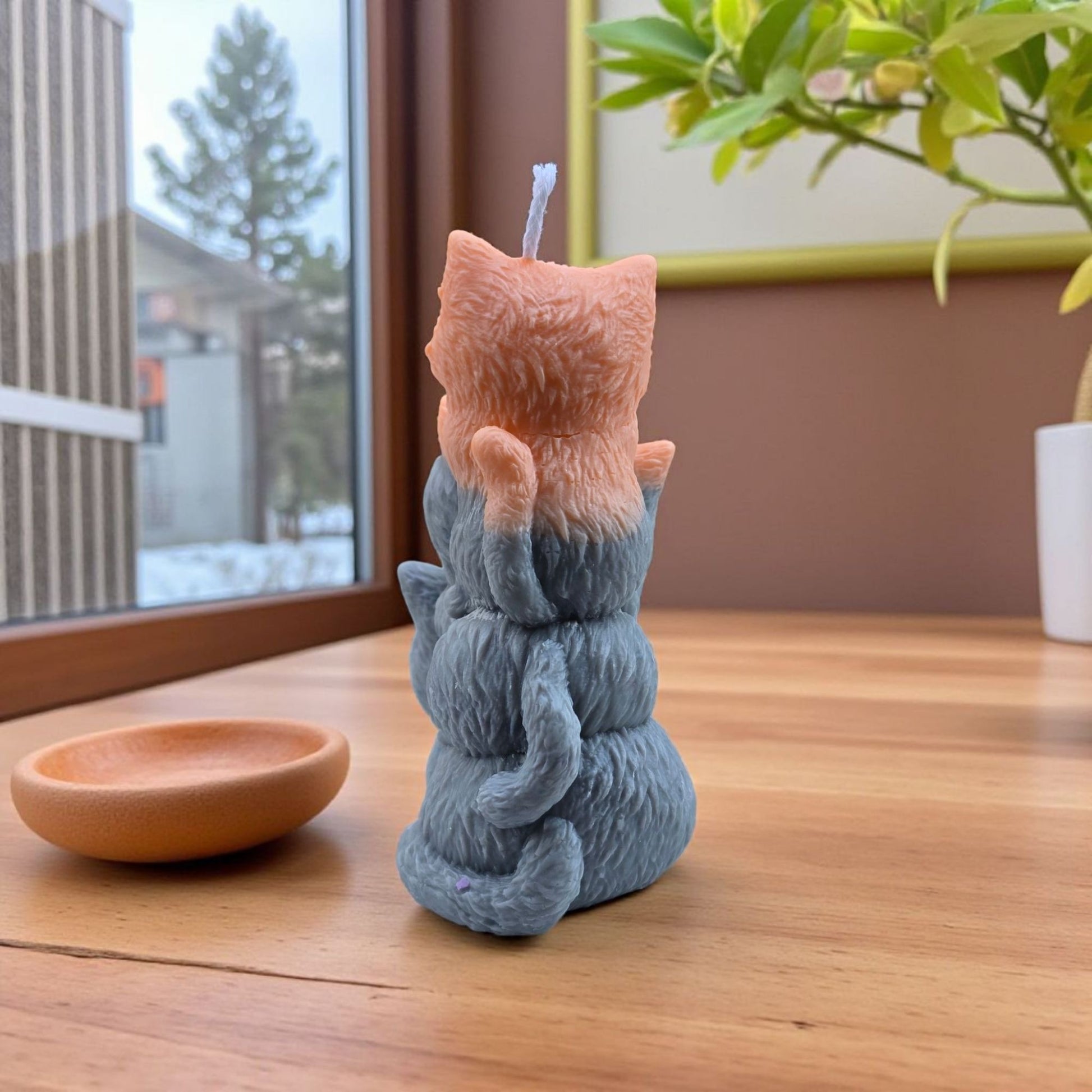 Three curious cats perch ✦ playful stack, each layer infused ✦ seasonal magic.