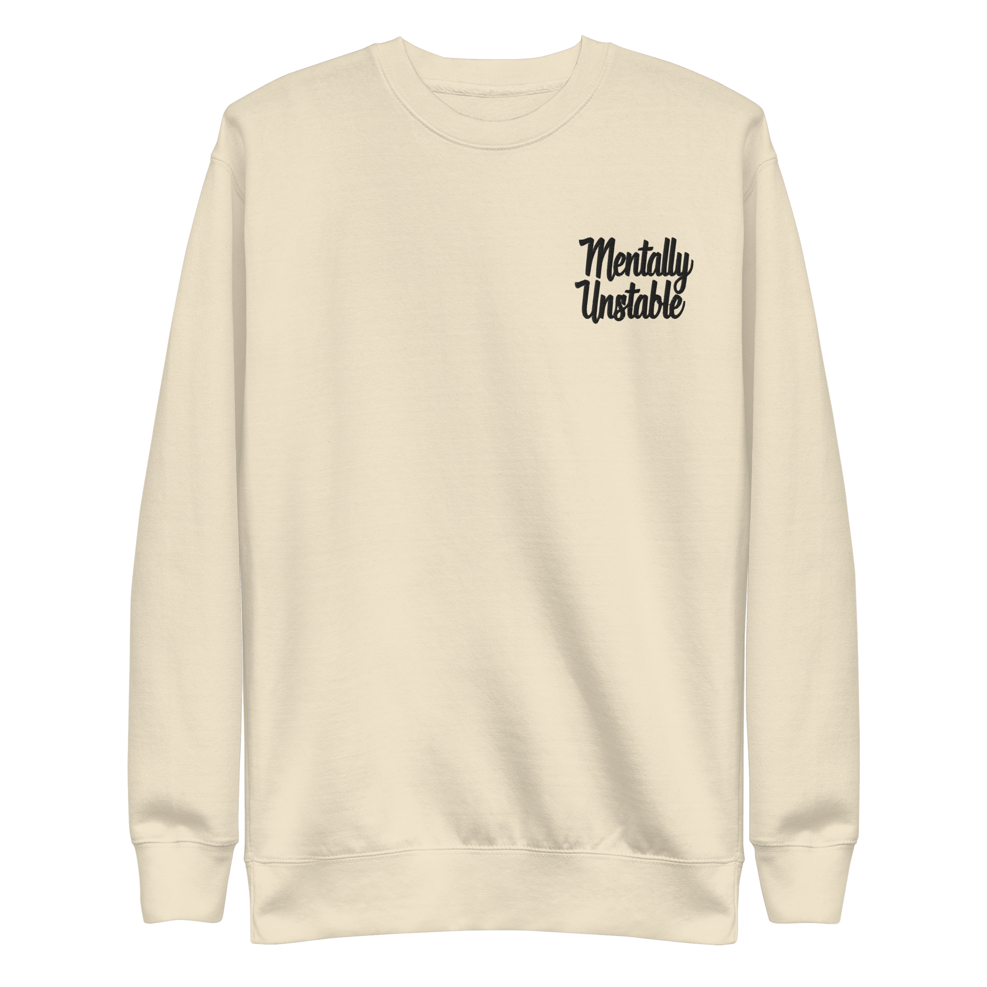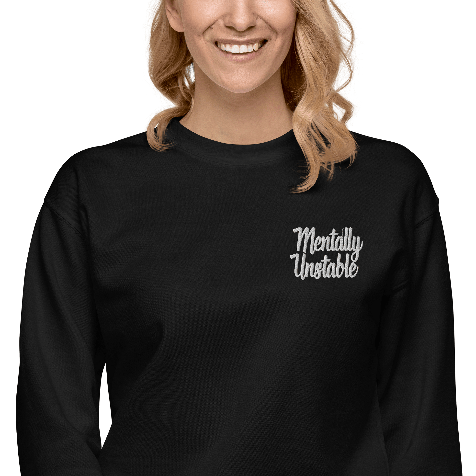 Rock a classic sweatshirt silhouette with ribbed crew neck, long sleeve cuffs, and a flat hem. The left chest features an embroidery of the words "Mentally Unstable" in a cursive font. Layer it up or wear it on its own for a contemporary streetwear look. With the soft fleece inside and comfortable fit, it’s sure to become your favorite everyday sweater right away!