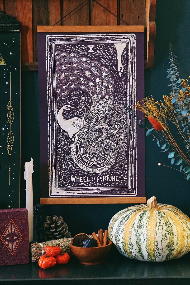 Bring the transformative energy of the Wheel of Fortune into your space with this stunning screenprint from the Light Visions Tarot deck.